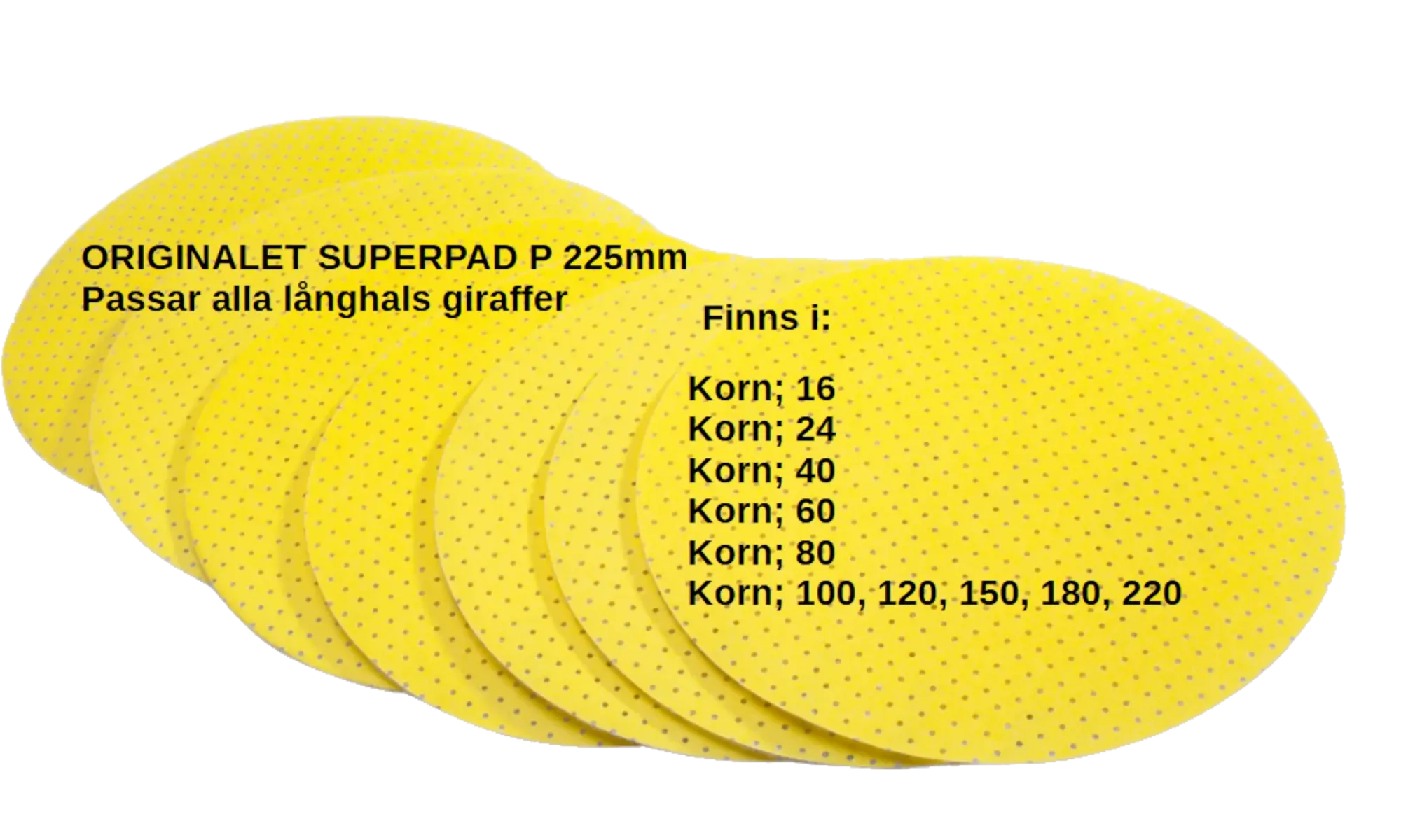 Tillhandahåller Orginalet, Superpad P, Eu patent 0781629, Us patent 5,810,650 Rondellerslippapper för alla Långhalsslipar 225 mm Golvsliprondeller upp till 460 mm.